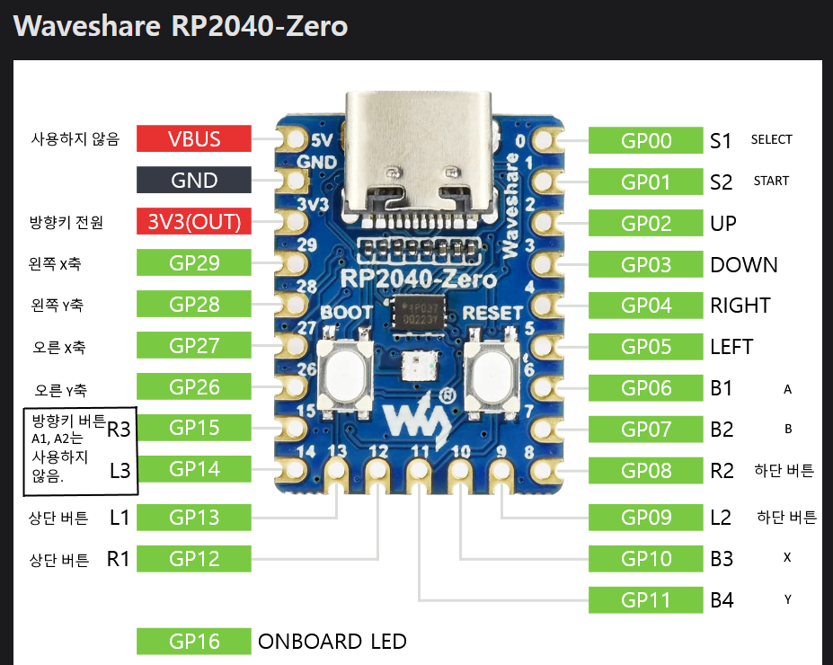 그리고 RP2040-ZERO를 선택한 이유는 너무 보드가 크면 조이스틱 안에 구겨넣을 수 없다. 그래서 큰 크기를 가진 원래 RP2040을 사용하기 어렵다.